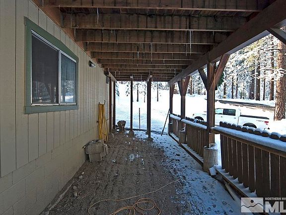 This two bedroom, 1 bath home offers an open floor plan with the kitchen, living and dining all flowing together. Cozy woodstove in the living room & slider to an expansive deck. Large lot just under 1/2 acre and located right across the street from the Markleeville Creek. Below the home is a large basement space with concrete floors for great storage or possibly a workshop. Oversized two car garage with good storage space and a covered carport area on one side. Mature pines.