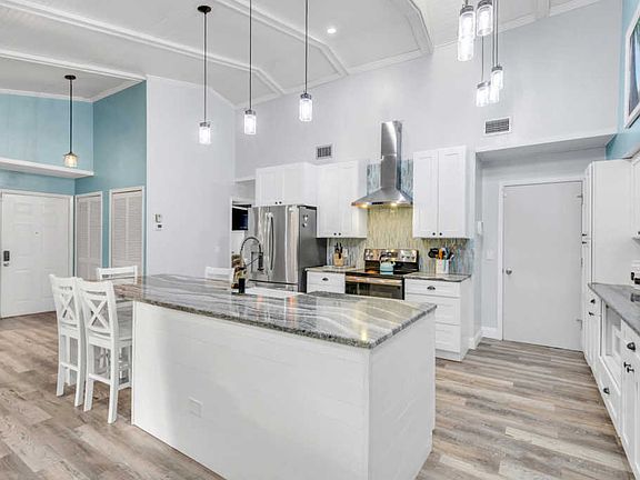 WELCOME to this Beautiful Villa Nestled in the much sought after 55+ community of Village Walk. This rarely available, remodeled 3 bedroom 2 bathroom 1 car garage villa is the largest waterfront unit in Village Walk. Relax and enjoy the serene and tranquil waterviews as you watch the boats go by from your beautiful tropical backyard and large open patio with electric awning or from your beautiful enclosed air conditioned Florida Room. The kitchen has been completely remodeled with gorgeous quartz counters, new fluted farmhouse sink, new appliances and so much more!!! This is truly one of a kind here in Village Walk. Its a must see!