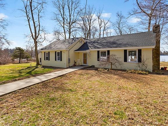 This rare, spacious 2+ acre lot overlooking the Norton reservoir will charm you from the outset. Nestled at the end of a private driveway, a one-floor sprawling ranch optimizes your 310' of water frontage - and those stunning views - at every turn. An oversized fireplaced living room looks over your own private dock ready for swimming, boating, fishing, ice skating, & more, and the expansive composite deck & two nearby firepits provide the perfect vantage point for sunsets & summer nights. Inside, 1940s charm abounds w/9' ceilings throughout, bullseye molding, & custom cedar built-in closets in the bedrooms. Newer windows, boiler, roof; updated kitchen & electrical service, central air, 2 sheds, & a massive detached, heated garage w/200 amp electrical service. A quick drive to 495 makes this location the perfect combination of access & seclusion. Don't miss your chance to snag this once-in-a-lifetime opportunity on the Reservoir! Appts encouraged Sat 3/21 (11am-1pm) or Sun 3/22.