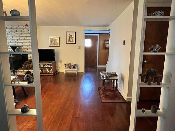Located on Ithaca's relaxed south hill, you're sure to love the atmosphere of this quaint mid century modern-esque home with updates! The space-maximizing floor plan features a charming interior and includes a flow-through living area, expansive great room and relaxed living spaces. Stay warm with the wood fireplace in the vaulted ceiling great room and a Jotul woodstove in 2nd living room. Overflowing with counter space and cupboards, this charming well-maintained kitchen boasts an electric oven and laminate countertops and a throwback avocado green refrigerator! The house includes well-maintained wood floors and all electric heat - perfect for solar if desired! The perfect location for outdoor fun in the tranquil backyard which boasts an in-ground pool, fencing, and wood decking. Keep your vehicles clean and dry in the 2 car attached garage PLUS a large 3-car detached garage with electric for all the extras. This unique home won't last long. Schedule your showing before it's gone.