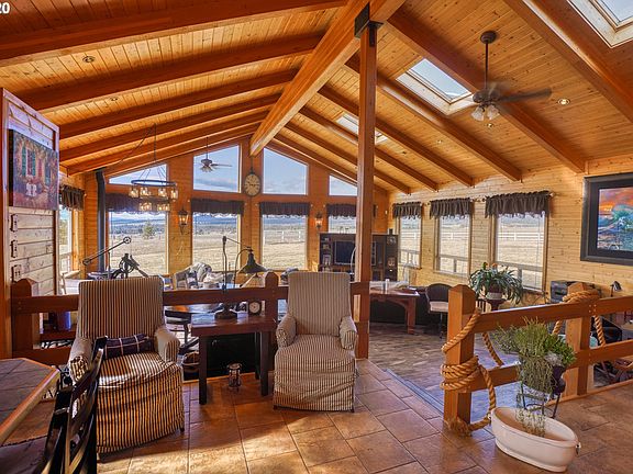 Gorgeous custom built home in the Rimrock area with NO HOA's or CCR's! One level living, vaulted ceilings, large picture windows & Redwood wall make for an amazing living space. Kitchen equipped w/ SS appliances - wall oven, warmer with 36" propane range & custom hood. Detached 60x52 barn/garage w/large 'entertaining' space, office & extra storage. Large 38x48 shop w/2 work rooms & 3/4 bath w laundry connections. Landscaped yard w/sprinkler system, Mt. Views and Solar panels w/yearly rebates.