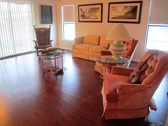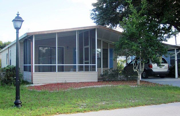 This 2 bedroom, 2 bath Palm Harbor has new laminate flooring throughout. Enjoy the Florida weather from the screen porch. Plenty of sunshine will shine through the bay windows in the dining room. The kitchen has lots of cabinets. There is an indoor laundry area with the washer/dryer plus lots of storage. The roof is only 2 years young. Hacienda Del Rio is an active and friendly 55 plus community right on the Intracoastal waterway. CALL TODAY! Over 700 homes available at http://www.fourstarhomes.com