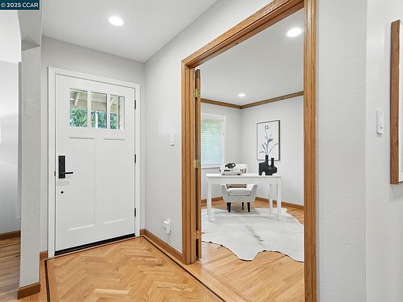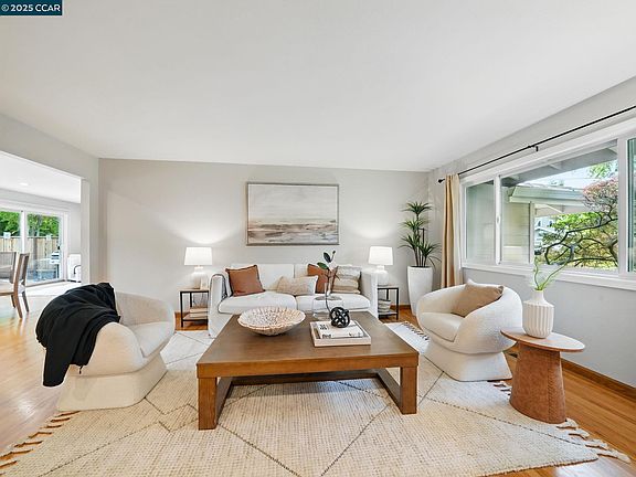 Welcome to 166 Roan Drive, an extraordinary 1,587-square-foot single story residence in the highly desirable Diablo Hacienda neighborhood situated on a .23-acre flat lot.This home features 4 spacious bedrooms and 2 elegant bathrooms impeccably designed w/contemporary features, generously sized rooms, offering flexibility for family, guests, or dedicated office space. The custom entry opens to a bright formal living room w/windows overlooking the lush front oasis.The heart of the home is the updated kitchen, complete with granite countertops, stylish cabinetry, built-in wine storage, ¢er island.The kitchen, dining area, and open-concept family room—with built-in cabinetry&cozy fireplace—flow seamlessly together, creating an ideal space for entertaining.The family room opens to a private brick patio surrounded by mature landscaping and fruit trees.The bedroom wing includes a spacious primary suite with en suite bath and private backyard access. Step outside to a beautifully landscaped backyard retreat,w/ patio spaces, sprawling lawn area&spectacular views of the surrounding mature trees and hills.Owned solar&located minutes from top-rated schools, parks, and downtown Danville, this home offers a rare opportunity to live in one of Danville’s most sought-after neighborhoods.