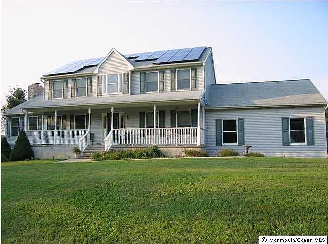 4 bedroom, 3 full bath custom colonial. 12 years young. Living room, dining room, eat in kitchen with stainless sink, solid oak cabinets, ceramic tile flooring, family room with fireplace, ceramic baths, main floor has bedroom or office, laundry facilities. Full basement, 2 car garage plus 2 car detached garage with heating and air conditioning situated on almost 2 acres. Perfect for car enthusiast or contractor. Solar panels!