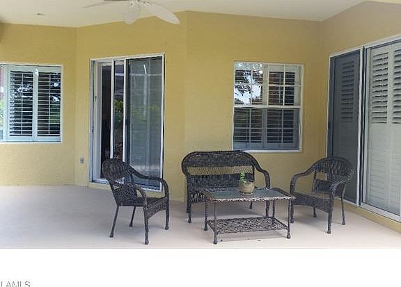 Single family home on quiet, small street with golf course, SW view. Neutral décor throughout with 10 ft. ceilings, granite counters in kitchen and baths, plantation shutters, manual hurricane panels. New A/C system installed 2014. There is space to install a small pool but it will be difficult due to the limited space and hedges between the homes. All hedges in backyard are within the lot and can be removed or trimmed back. HOA includes annual pressure washings, house painting every 10 years, all landscaping, cable and more. There is no community pool to use on San Rafael. Watch the sunsets over the golf course from lanai. Within walking distance of grocery store, shopping center and hospital. Close to community park with tennis, basketball, water park and more. Vineyards Country Club membership is not required. VCC offers a full range of membership options. Please note: The San Rafael HOA has a one small (under 30 lbs) pet rule (2 possible).