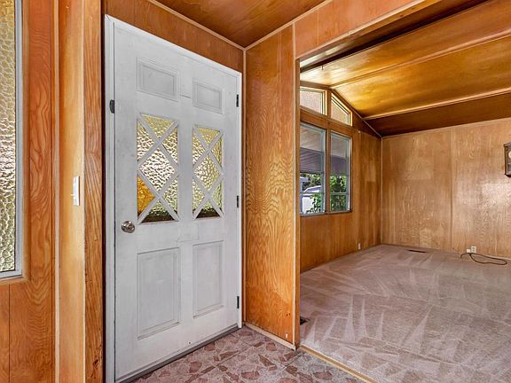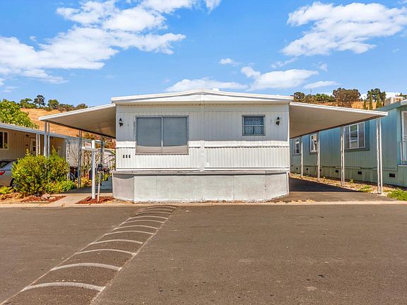 This is a 2 bed/1 bath home located in a FAMILY Park (all ages). Upon entering, you will walk into the foyer. To the right is a bright dining area with a view overlooking the park, City lights and mountains. It also features a buffet counter with upper/lower cabinets. The kitchen has plenty of storage and comes with the stainless steel gas/oven and refrigerator. To the left of the foyer is a very spacious living room with beautiful wood paneling on the ceiling and walls. Wood paneling is featured throughout the home, including bathroom, bedrooms and laundry. The laundry room has a stackable washer/dryer that is included in the sale, and has a door that leads to the carport for easy access in/out of the home. Some updating and TLC will make this home shine!