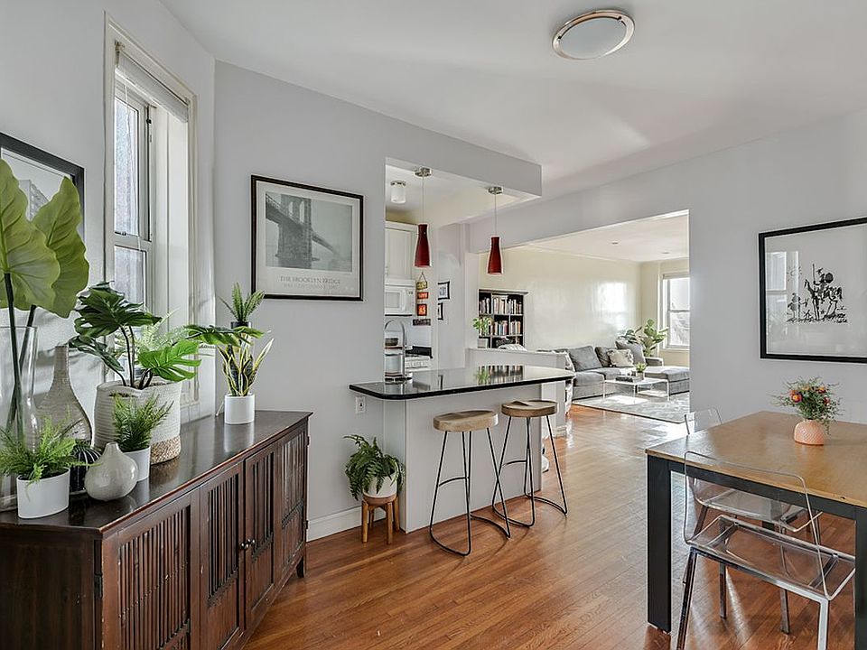 Open House Sunday by Appointment 3D Virtual Tours Available Stunning, sun-lit and spacious, this pre-war two bedroom is the home you have been waiting for. This two-bedroom, 1 bath unit spans 1,000 square feet and is nestled in a pet friendly (yes, dogs too!) and meticulously maintained elevator building with common laundry, live-in super and bike storage. This stunning home offers two bedrooms - with the oversized master bedroom featuring two exposures, expansive living room, separate dining area, gleaming hardwood floors, renovated bathroom with glass tiles and windows throughout. The windowed kitchen has been beautifully renovated and has ample counter space with seating. Perched above the treetops, the perfect view of sunrises and sunsets is just another added bonus to this stunning home! Located a half block from Prospect Park, the Vanderbilt Playground is just a block away, and nearby restaurants and shops such as The Elk Cafe, Le Paddock, Della, Piccoli, Krupa Grocery, Yoga Sole and more. Within walking distance to the F/G station, the serenity of suburban living is just a train ride away from Manhattan.