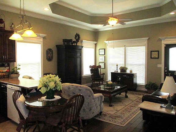 Home has beautiful hardwood floors and tile in kitchen and baths. Extra crown molding up above the living room windows, box trey ceilings and master bedroom. Lovely colors thruout home with one owner who has taken excellant care. Appliances are less than 2 years old, upgraded from the original appliances, stove is reserved but seller will replace for buyer. Security lighting, underground sprinkling, and other upgrades make this a very lovely home. The sunroom can be used for office or nursery. Retractable awning added to back deck for your enjoyment. Added trees to front yard for shade and beauty. Come see soon!