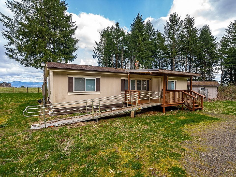 Secluded, level and fenced 2 acre parcel, Great view of Mt. St. Helens. Evergreens to block the afternoon sun. Covered front porch and covered back deck. 2 bedrooms and office/den. Appliances on site stay with house. Small storage building for garden tools etc. 30’ x 48’ insulated shop has an electric garage door opener. Enjoy the magnificent sunrise from your covered deck.