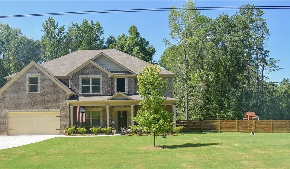 Beautiful 2-year-old home, **3 SIDED BRICK** on nearly an acre, level lot with beautiful fencing around part of the yard and a lovely front porch! This Spacious 5 BR/4 Ba gives you an airy, open concept with a lovely white Kitchen with granite counter tops, center island and pantry, open to the Great Room with ceiling fans and a coffered ceiling. You will love the separate Dining Room with coffered ceilings and a living room. In addition, you will find a specious large bedroom and bathroom on the mail level. Upstairs you will find a spectacular Master Bedroom with a sitting room (which could be an office or gym) and a large Master Bathroom and Closet! You will also find a second Master Bedroom/Bathroom and an additional 2 Bedrooms. This lovely home has tons of architectural features, you will have to see it for yourselves!