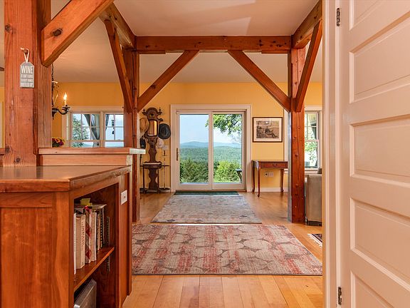 High atop Sokoki Hill, at roads end with total privacy and stunning views to the east and west, this spirited contemporary is surrounded 50 acres of peaceful woodlands. Established plantings, stonework, along with a 2-story VT Geo Barn and an inviting pool create a pleasing landscape. Incorporating traditional frame construction, suspended by a rugged timber frame core, this fabulous home is a welcoming place for friends and family. The practical foyer with tiled floor leads to a well-appointed kitchen, open concept dining and a newly added living room, complete with cathedral ceilings, a stone-faced fireplace and floor-to-ceiling bookcases. A first-floor bedroom wing offers a full bath with handsome tilework and inviting sauna. Two more bedrooms, a full bath and balcony complete the 2nd floor. The 3rd floor is a perfect space for an office or studio space. A large, covered porch provides shelter from the elements and a space to relax and enjoy the westerly views. This fabulous property and location are a calming retreat. Additional features include a hot-tub, generator, full basement with space for work and storage. This property is an easy distance to Brattleboro, Wilmington, Newfane and Dover, offering 4-season recreation, including nearby South Pond and Sunset Lake.