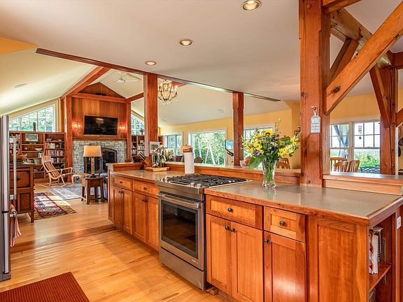 - Cathedral Ceiling(s), Ceiling Fan(s), Dining Area, Kitchen Island, Kitchen/Dining, Living/Dining, Primary BR w/ BA, Natural Light, Sauna, Security, Walk-In Closet(s), Walk-in Pantry, Wood Stove Hook-up