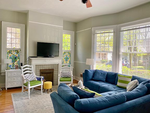 AVAILABLE NOW! 1911 Craftsman cottage, one lot off Milledge Avenue and just blocks from UGA campus & heart of 5-Points. A wonderful in-town location. House has classic tall ceilings, heart pine floors, fireplaces, stained glass windows, stylish light fixtures, claw foot tub/shower, open floor plan with double French doors between living & dining room both of which have fireplaces. Kitchen has been updated with newer appliances and new butcher counters and cabinets. Amazing front porch, rear courtyard, off-street parking, mature landscaping. Shared driveway. Small dogs considered. One Year Lease