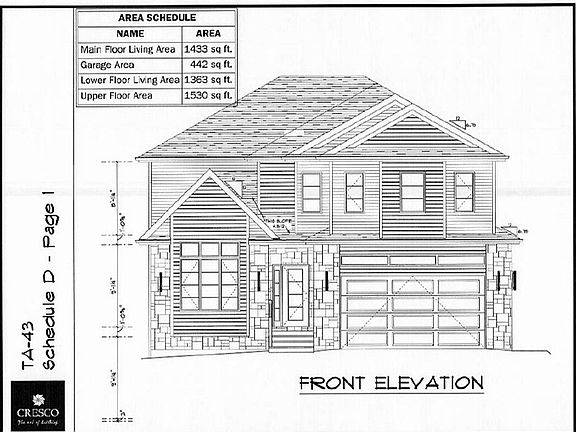 Executive 2 storey home by Cresco.5 Bedrooms , 5 Bathrooms , 3 Ensuite , Double car garage Windows - Black on front, Garage man door, and flanking window in BR#2 Driveway and front step are exposed aggregate - front railing is black aluminum Rear Deck is 12 x 24 composite with glass rail (black framed) with no stairs down. Heating system is upgraded (high efficiency) ducted heat pump with gas backup and integrated HRV Gas connections to heat pump, stove, BBQ and Fireplace Fireplace is 36" Napoleon Linear natural gas Under slab is insulated with 2" HD under the entire slab Plumbing is Cresco elite package with floating cabinets in powder and ensuite, wet bar, fully tiled master shower with bench and alcove - and extra ensuite in Bedroom #4 Chimney style range hood is included .