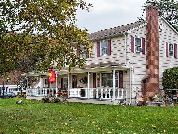 FOUR BEDROOM COLONIAL ! Lovely home with wide front porch. Entry hall with hardwood floors opens to living room with hardwood floors, wood burning fireplace and open plan to dining room. Dining room with hardwood floors and sliders to rear deck and built-in wall a/c. Kitchen with eat-in area. Back hall/mudroom and half bath. Oversized master bedroom (apo hardwood floors under wall-to-wall) with ample closet space. Three additional bedrooms all with hardwood floors. Partially finished basement. Large lot with wood deck. Storage shed. With some updates this will be a great home in a convenient area.