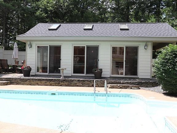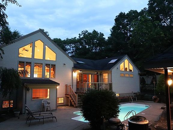 Entertainers and hobbyists alike will not be disappointed here! Spectacular custom builder's home. Custom details throughout, wrapped beams, stone walls, built-ins, extravagant trim and high end finishes make this home one of a kind. Solid maple kitchen w/granite & stainless. Great room with cathedral ceilings, oak bar, gas fireplace, dining room, family room & pool table! Indoor hot tub. Master suite with his/her closets & custom tile shower. Indoor and outdoor audio systems and a home theater room with 10 foot screen & 7.1 sound system! Custom wrap-around built-in corian desk office. In-ground heated pool with neighboring cabana and hard-lined gas grill. Central air, radiant & baseboard heat. Kinetico water filtration system. 30x40 garage finished and heated with in-law potential above. Additional 12x24 garage! Koi pond, irrigation, stone walls and beautiful trees on this private retreat lot convenient to Rt 44, 3, 495 & MBTA.