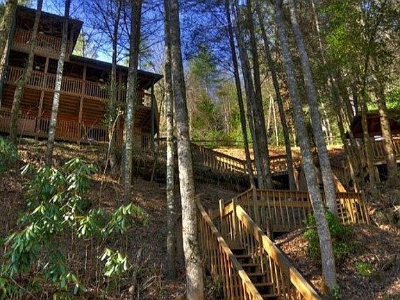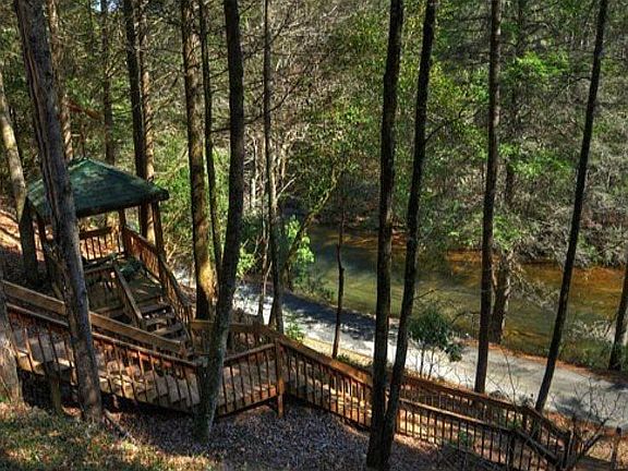 River frontage, 139 ft. with Gazebo overlooking the Toccoa River. House is fully furnished, turn key and ready for rental, if needed. Gas logs in fireplace. Full basement can be finished for another bed, bath, game room. Willing to negotiate buyer's agent commission.