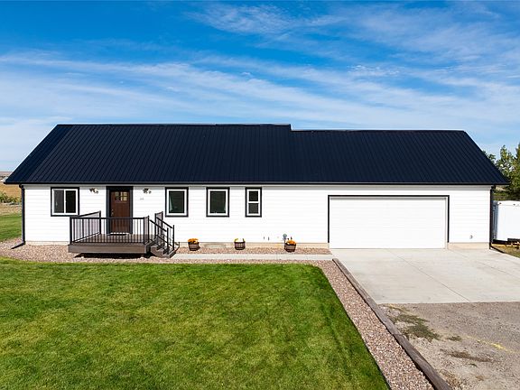 Just a short drive from town, lies a 2,400 sf home completely remodeled 4 bedrooms, 3 baths on 5 acres. Maintenance free siding, vinyl windows, central air, sprinkler system, attached heated garage. The open concept kitchen living room with sliding doors to your back patio. The kitchen features beautiful cabinetry, solid surface granite counter tops stainless steel appliances, gas range & built in microwave. Outside the home is surrounded by maintenance free siding, a metal roof, sprinkler system, manicured lawn, prairie grass and tons of space. This home is connected to natural gas and has a water purification system... no more bottled water! Call Kris Holmlund 406-781-6899 or your real estate professional.