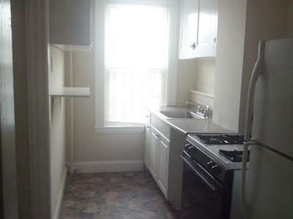1 bedroom apartment in multi-unit building. Hardwood floors throughout, newer windows, 3 good-sized closets, lots of cabinet space in the galley kitchen. Shower only in bathroom. Close to commuter rail. Heat & hot water included. Tenants pays gas for cooking, electric phone/cable/internet. Onstreet parking. First, last and 1/2 month realtor fee required upfront.