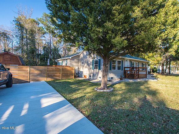Introducing a charming and elegant home in Jacksonville, NC, where modern sophistication meets rustic country charm. This completely remodeled 2-bedroom, 2-bathroom house boasts a fenced-in yard, shed with loft, and a built-in fire pit for outdoor entertaining. Inside, you'll find easy maintenance flooring, a large kitchen with plenty of counter space and a movable island, a cozy breakfast nook, and a spacious living room/dining combo. The flex space off the living room offers versatility, while the country charm is enhanced by barn doors and vaulted ceilings. Relax in the deep standalone bathtub or rejuvenate in the stand-up shower. Updated lighting throughout the home and room-darkening shades in the living and dining room add to the ambiance. Enjoy the large yard, 3/4 fenced with a natural tire line across the back, and a side deck for outdoor gatherings. With a mudroom for convenience, this home is the perfect blend of comfort and style. Stay tuned for more details on this upcoming property!
