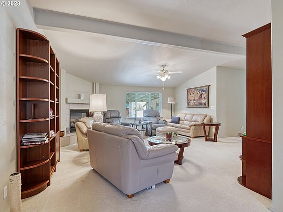 Lovely triplewide manufactured home in Middlefield Estates, Cottage Grove's premier 55+ community located on Middlefield Golfcourse. This spacious home is nicely appointed on a quiet street with easy access to the golfcourse. Gracious rooms with high ceilings and generous windows. Formal living room and separate family room with gas fireplace. Formal dining and separate dining nook off kitchen. Large kitchen with butler-style pantry, island and abundant counter/cabinet space. Roomy master bedroom with 10x10 closet and spacious master bathroom with garden tub plus stand-up shower, walk-in closet and double sink vanity. Half bathroom off laundry room. This home has a furnace on each end of the house plus the gas fireplace for warmth and ambiance. Oversized 2 car garage with deep storage shelves and workbench. Partially covered, private backyard patio with raised beds and fully fenced. Middlefield Estates is a quiet 55+ community located in a convenient location. The hospital is nearby along with the local theater, grocery shopping and busline. The community is surrounded by Middlefield Golfcourse, a well cared for, 18 hole course. The clubhouse offers a large gathering room, well equipped kitchen, gym room and covered patio in back. If you are looking for a spacious, well cared for home in a pleasant, convenient setting, please set up an appointment to view this lovely home.