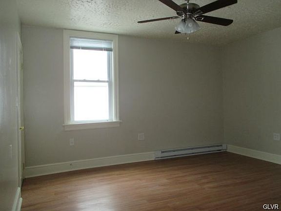 Completely renovated, sunny and clean one bedroom apartment available on second floor. New bathroom, windows, flooring and kitchen. All utilities included except electric. One very small dog or one cat may be considered for an additional $25 per month. Criminal background and credit check required at applicant's expense. One month security deposit and first month's rent due at lease signing.