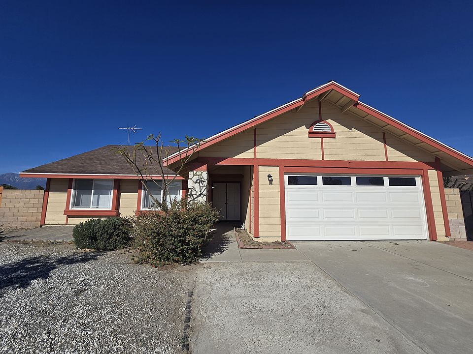 North of the 10 FWY, this 4 Bedroom, 2 FULL bathrooms home has Two-toned paint, large kitchen connected to dining area. Kitchen with chestnut colored wood cabinets and granite countertops. Tile flooring in living space and kitchen, vinyl plank flooring in bedrooms. Livingroom with fireplace. LARGE back yard, perfect for Summer BBQ's. Master bedroom has sliding door that leads to back yard. Central AC and Heating. Attached 2 Car Garage. High Schools nearby. Included in rent: None. Laundry: Washer and Dryer Hookups in Garage Pet Policy: No Pets Rent: $ 3,000 / Security Deposit: $ 3,000 / $45 per Adult Processing Fee Cashier's Check or Money Order only for Application Fee, Security Deposit and Processing Fee. NO smoking/vaping. One application per person living in property 18 and over. We require all original applications be delivered to our offices by prospective tenant. All tenants must carry renters insurance for the totality of their lease. Please be sure to read our entire application. Square footage and lot sizes are estimated. Minimum one year lease.