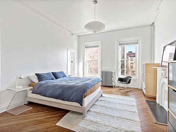 *SHOWINGS HAVE CONCLUDED. NO NEW APPOINTMENTS AT THIS TIME.* Balancing old world charm with modern updates, this radiant 2BD/1BA occupies an entire floor of a quintessential Fort Greene brownstone. The gracious living room overlooks verdant Fort Greene Park through a duo of oversized windows with pocket shutters and features an ornamental fireplace and a roomy walk-in closet. The living room leads into the fully upgraded galley kitchen with sleek lacquered cabinets, quartz countertops, and stainless steel appliances, including a Bosch dishwasher. The king-size primary bedroom also has a decorative fireplace and walk-in closet with a washer/dryer combo unit along with direct access to a classic exceptionally spacious sunlit windowed bathroom with black and white tiling, new marble vanity, large tub, and wall-mounted toilet. The second bedroom, off the living room, makes for the perfect home office, nursery, or guest room and faces the park. There are original hardwood floors, lofty 10-foot ceilings, and decorative moldings throughout. Located in the heart of prime Fort Greene on an enchanted landmarked park block, the impeccably maintained owner-occupied townhouse is close to all that Myrtle and Dekalb Avenues have to offer and is convenient to transportation. Available ASAP. No dogs, please. No guarantors, please. Rugs must cover at least 80% of the floors. Heat, hot water, and cooking gas are included. Renter's insurance required. Tenant pays 15% fee. In-person interview required.