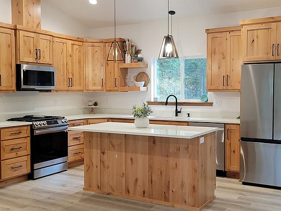 Beautiful Brand New Construction on a nice level 1.25-acre lot with plenty of room for a SHOP! The seller has thought of everything in this one level 1865 sq ft home. It has 3 Bedrooms, 2 Baths and so many upgrades such as custom Knotty Alder cabinets with pull outs, soft close and several large deep drawers, Quartz counter tops, upgraded Samsung appliances & a pantry! Also includes large living and dining room with vaulted ceilings and beautiful wood trim throughout, plus, a nice Master Bedroom with a walk-in closet and an ensuite bathroom with a separate shower and a tub (that can be a jetted tub), double sinks with beautiful cabinets. The heat source is Gas F/A Heat with central A/C and the living room is plumbed for a gas or a wood stove. This home is internet ready and has a climatized crawl space plus a nice size 2 car attached, finished garage with openers. With this 1.25 Acre lot and no CCR's or HOA's. It would be hard to find a brand-new home with this quality on a lot this size this size. This may just be the perfect place for you!