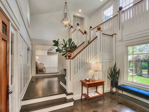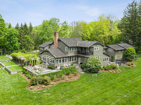 Beautifully remodeled Arts & Crafts style on 3 lush, private acres on desirable lower West Road. This exceptional property features 5 BR, 5.2 BA & 7,258SF. Two-story foyer with stain glass, eat-in kitchen with granite & stainless appliances, adjoining breakfast room with vaulted ceiling & skylights. Adjacent family room with fireplace & sliders to a side terrace. Formal living & dining rooms with stylish paneling, sunroom with walls of windows, fireplace & French doors leading to the back terrace. Master suite with spa bath, his/hers dressing rooms, sitting area & balcony overlooking the spectacular backyard. The fully fenced property features a wisteria covered pergola, gazebo with fountain, mature trees & flowering plants. The setting integrates perfectly to create a magical home