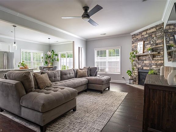 Welcome to your dream home in Stone Mill Village! This stunning one-level end unit townhome with three bedrooms & two baths combines modern luxury with timeless charm. Boasting a beautiful brick exterior complemented by stone accents & a two-car garage. Open-concept layout where the kitchen, dining, & living areas seamlessly flow together, are perfect for entertaining & everyday living. The kitchen features granite countertops, a spacious island, & ample cabinetry. Stone accent gas fireplace in the living room creates a cozy ambiance. The primary bedroom has an elegant tray ceiling and large primary ensuite bathroom. Enjoy outdoor living in the extended fenced backyard area. Additional highlights include a convenient laundry drop zone & beautiful curved archways that add architectural interest throughout the home. Impeccably maintained & ready for its new owners! Floorplan available. Seller is a licensed Realtor. Open Houses: Saturday, June 15, 1-3 p.m.