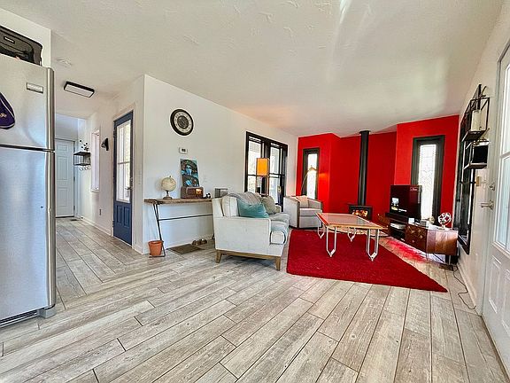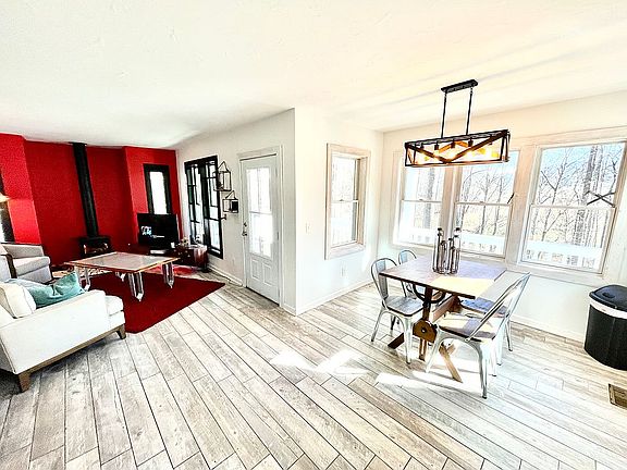 Cute, cottage style home in an established neighborhood, 2 bedrooms, 2.5 baths, finished basement, wood heater in the living room for extra heat, tile floors, plethora of windows, metal roof, vegetable garden area, covered porch overlooking woods and creek, very unique floor plan.