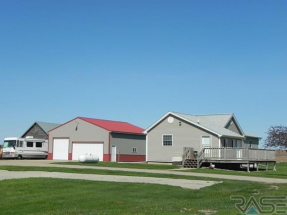 Awesome little acreage in the country just a short drive into Sioux Falls! Your own peaceful homestead just 3 minutes from town for the essentials and under 20 minutes to the city. Home was completely gutted and built up new including a new basement pour in 2002. Family style farm kitchen with lots of cabinets, 2 food counters for seating up to 6 and also room for a full table and chairs. Large 262 sq.ft deck off the kitchen and foyer makes for added living space during the warmer months. 36' x 36' metal pole building (garage) built in 2004 has ample room for 4 vehicles plus a storage area and storage loft. Original 26' x 32' corn crib now used for additional storage. 2 implement sheds, 16' x 32' hog coop also make for great hobby farming and acreage life. The big barn is almost down and owners will finish the deconstruction of the wood portion of building. All new shingles and vents on home in 2015! A move in ready acreage with charm and modern conveniences.