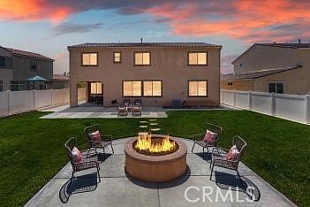 Welcome to this beautiful 4-bedroom (plus loft), 3 bath home situated in the highly sought-after Sundance North Community. Nestled in a prime location, this extraordinary property sits on one of the best lots in the neighborhood with no rear neighbors and boasts stunning snow capped mountain views from the second level that gives you peace, tranquility & park-like-privacy! Upon entry, you will immediately see the pride of ownership on display in this well-maintained home with a bright and open floor plan designed for grand living and entertaining. The versatile floor plan includes formal dining room, family room and oversized loft. The kitchen features an open-concept design, expansive granite island, stainless-steel appliances, gas cooktop, more than enough counter & cabinet space, walk-in pantry and charming barn door. The primary suite is large and provides a generous walk-in closet. The primary bathroom offers a large soaking tub, separate walk-in shower, and dual vanity sinks. The additional bedrooms are spacious, have ample closet space and share a “Jack and Jill” bath. The convenient private downstairs bedroom and bath is ideal for guests or multi-generational living. Fabulous entertaining awaits you in the the backyard oasis where you can dine al fresco all year long under the covered patio, play games on the lush grass, or enjoy cozy evenings relaxing by the built-in fire pit. Have your pick of fresh fruit from the wide variety of fruit trees (peach, apple, orange or clementine trees or blueberry and raspberry bushes.) The home is equipped with an affordable solar panel lease and tankless water heater that allows you to save on energy costs. The property features a convenient upstairs laundry room and a spacious 3 car garage. It’s ideally located within walking distance of the elementary school. Embrace the vibrant community lifestyle with access to pools, tot lots, sport court, and close proximity to shopping, dining, golf courses, parks, Cabazon Outlets, freeway access and renowned recreational destinations such as Big Bear, Lake Arrowhead, Oak Glen and Palm Springs. An exceptional opportunity awaits! Don't wait to make this beautiful property your own.