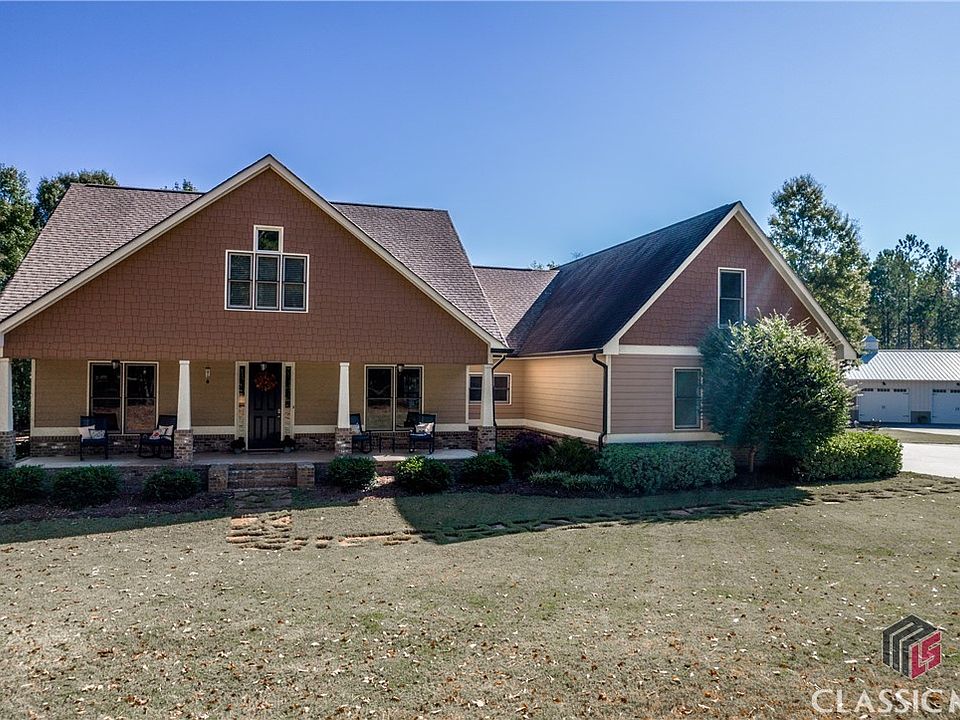 Stunning home in the highly desired area of Morgan County! Do not miss your opportunity on this extremely well built 4 bed 3.5 bath home with a 36x50 3 bay shop on over 17 private acres! Pull into your gated driveway with almost 600 foot of road frontage and travel approximately 300 foot back to your new slice of paradise! Before opening the front door, take a moment to take in the quiet rocking chair front porch. Continue in the home and enjoy the open floor plan and natural light. Take note of the beautiful hardwoods, triple crown molding and plantation shutters. In true Georgia fashion, enjoy the ability to host many for dinner as your new home has a large dining room with 12+ seating space, a breakfast nook area and bar seating. In the kitchen you will find no detail has been overlooked. From the granite countertops, to the energy efficient KitchenAid stainless steel appliances and beautiful lighting, to the tile backsplash and custom cabinets you will fall in love with your new kitchen. Did I mention the HUGE pantry!? In this split floor plan you will find 2 generous bedrooms, full bathroom, additional closet space, and an oversized laundry room with a wash station and plenty of cabinets and counters for all your laundry needs.. Continuing through the home you will find your private master suite featuring trey ceilings with triple crown molding, separate soaking tub and shower, double vanities and walk in closet. Down the hall notice your half bathroom and a door to go upstairs. Upstairs you will find your 4th oversized bedroom suite with full bathroom. Walk out onto your back deck and enjoy all the privacy of the property. Notice features such as trex decking, hardy plank siding, well maintained lawn and additional seating area. Apart from the attached 2 car garage, you have room for whatever your heart desires in the 50x36 shop! Shop features include 3 bays, and front door entry, storage, electrical and plumbing. Make sure you check out the extensive trails through the private wooded property and container for more storage. Home has public water and fiber internet. Should 17+ acres be too much make sure you talk to me about the opportunity to purchase with 5-7 acres instead. This home has it all! Call me today to set up your showing.