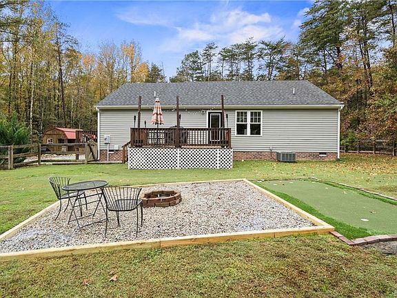 You are going to LOVE this beautiful low maintenance rancher situated perfectly on a private 2 acre lot in Powhatan. You are greeted with tons of curb appeal between mature plantings, fenced in yard, covered concrete front porch, custom detached shed w/ tons of storage and the personal PUTTING GREEN. COMCAST HIGH SPEED INTERNET! Features/Upgrades; Vinyl siding, Vinyl energy efficient windows, 30 year dimensional roof, NEW carpet, and so much more. This Home offers an Open Floor Plan with Large Family Room to include Hardwood Floors and Ceiling Fan. The Kitchen boasts NEW backsplash, updated counters, custom oak cabinets, Stainless Steel Appliances, Hardwood Floors, Recessed Lighting and a huge eat-in dining area. A Large Master Suite with two Walk-in Closets and Ceiling Fan. A Private Master Bath with Black Granite Sink. Two additional Bedrooms with Large Closets, Ceiling Fans, and Hall Bath with Granite Sink. A Large Laundry/Mud Room with Side entry & Porch. Tons of outdoor entertaining space with a fire pit, playground, shooting range in the back of the property (with backstop) concrete covered porch, and large back deck! Close to Courthouse, Shopping, YMCA, Midlothian & 288.