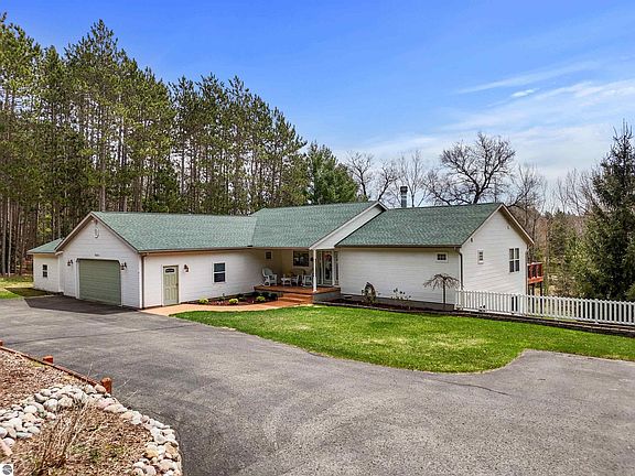Wake up in your master suite, step out onto your private deck, and breathe in the fresh air as birds sing from your private deck. This beautifully maintained 5-bedroom, 4-bath home offers 3,835 sq. ft. of thoughtfully designed space where comfort meets functionality and a love of nature. From the moment you enter, you’ll notice the attention to detail—from the ceramic tile flooring in the kitchen, laundry room, and foyer, to the carefully designed layout that enhances both flow and entertaining potential. The heart of the home is an open-concept kitchen, living, and dining area featuring a large island with sink, custom cabinetry, granite countertops, and high-end appliances. Vaulted ceilings and a beautiful stone fireplace add warmth, while full-view windows and sliding doors stretch across the back wall, showcasing panoramic views of the spacious, tree-lined backyard and abundant wildlife. The primary suite is a private retreat with a large walk-in closet, dual sinks, a tile shower, soaking tub, and direct access to the upper deck. A convenient main floor laundry adds everyday ease. Head downstairs to the fully finished walk-out basement, where you’ll find four large bedrooms, a family room, a full bath, and a half bath — ideal for hosting, hobbies, or multi-generational living. Step outside to enjoy multiple decks, a paved patio, a campfire pit, and a gazebo — all perfect for relaxing or entertaining. The landscaped yard with sprinkler system, paved driveway, 30x24 attached garage, and 12x20 garden shed round out the exterior. For outdoor lovers, this home is a dream — just a short walk to Au Sable River shared access for kayaking and minutes from Higgins Lake. A short trip to enjoy a weekend getaway in Traverse City for fine dining, shopping, or wine country tours. Seller just added a new boiler furnace. Updated in 2023 and impeccably cared for, this home is the perfect blend of country charm, modern comfort, and natural beauty — ready to welcome you home.