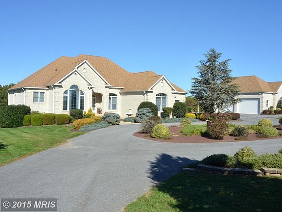 Custom built brick home w/all the bells & whistles! 10 ft ceilings & cathedral in FR, Gourmet kit w/granite, glass front cab, island/b'fast bar. MBR suite w/tray ceiling, lg closets, den/sitting rm w/built ins. Large LL rec rm w/wet bar, BR/den, full bath, woodstove flue & storage areas. Stamped concrete patio, heated salt water pool & overlooks spacious yard. Detached 3 car garage w/floored loft.