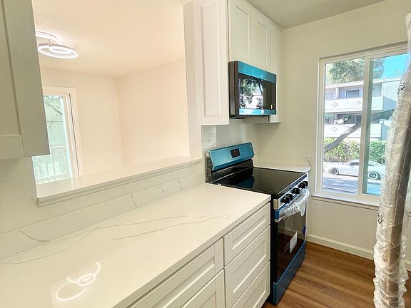 This beautifully remodeled upstairs corner unit offers a spacious 2-bedroom, 1.5-bathroom layout with 1,066 sq. ft. of living space and two private balconies. The home blends modern style with comfort, featuring fresh paint, new floors, doors, windows, and light fixtures, along with recessed lighting throughout. The upgraded kitchen includes sleek quartz countertops and new stainless-steel appliances, while the bathrooms have been thoughtfully updated with new mirrors and fixtures. The first floor offers a spacious living room, dining area, kitchen, and half bath, while the upper floor features two bedrooms with high ceilings and a full bath. Additional highlights include central heating, new AC, and private storage space. Water is included in the HOA dues. Conveniently located near the freeway, shops, services, and BART, this apartment is the perfect place to call home. The lease is for one year and will continue if both parties are satisfied. Renters are responsible for PG&E, internet, and cable expenses.