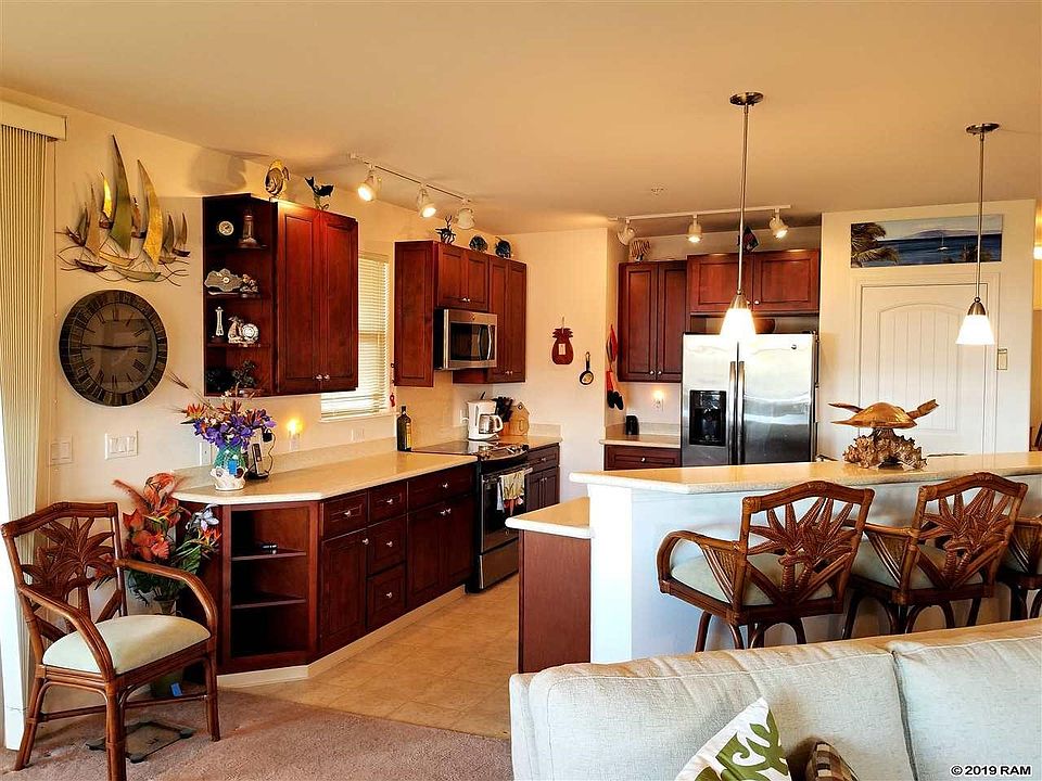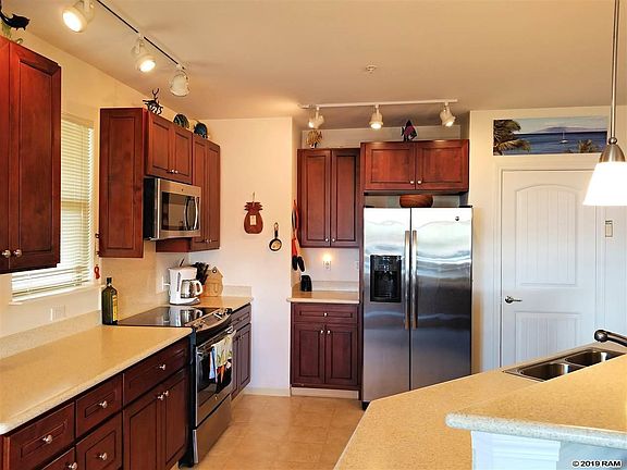 PRICE REDUCTION Amazingly large floor plan and layout to this 4 Bedroom and 3 Bath Residential Condo in Lahaina. This is the largest floor plan available at Opukea and located on the top floor in a unique property seldom available. In fact, of the 4 Penthouse units sold in the F Building this is essentially the first one available since the initial offering in 2015. Looks and feels like new this expansive floor plan has a lanai off of the Master Suite with Ocean views to the South as well as a large Lanai off the Living room totaling 424 square feet of additional living space to this already large living area of almost 1900 square feet. There is a large Master suite with walk-in closet and large bathroom area with custom tiled shower as well as additional tub area. There are three additional Bedrooms with one configured as a suite, the second adjacent to the third Bathroom the fourth currently set up as an office. There are individual split Air conditioners in each Bedroom in addition to the main living area. The upgrades include cherry cabinets, Energy Star Stainless Steel appliances, granite counters in the Kitchen and Bathrooms, motorized roller shades in the living room, dual pane windows, additional storage in the unit as well as access to an exterior storage closet. Tastefully decorated and partially furnished this is one of the best values available close to Lahaina town, shopping with easy access to the beaches, Front Street and the by pass. The amenities include great pool area, exercise room, Bar b Que and recreational area and the property is even pet friendly. There are three parking spaces included. This is an ideal Owner occupied Complex or Investor property. The unit is very easy to show and available for immediate occupancy. Call your favorite Realtor for showings and additional details.
