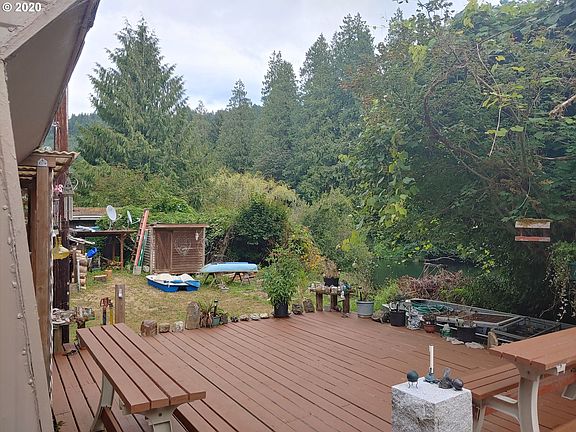 Beautiful and Peaceful spot on the Alsea River. Deep Water, boat dock and deck. Shop/garage 20x24, and tool shed. Manufactured home on property with add on's - too old to finance.