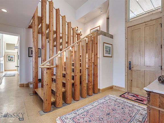 Incredibly private mountain contemporary home perched on a bench in a colorful aspen grove on 60 alpine acres only 9 miles from downtown Main Street Bozeman. Property borders another 190+ acres of open space increasing overall privacy and allowing access to Bridger Creek. The homes open design with generous amounts of glass facing western exposure take in breathtaking views of the eastern front of the Bridger Range all the way to Bridger Bowl ski area located another easy 9 miles up Bridger Canyon. The home designed primarily for main floor living, offers a an open floor plan with rooms accessing extensive outdoor patios thru glass doors to a full length connecting patio. The kitchen, which opens to the great room, dining and sitting areas, offers an east facing informal breakfast nook area accessing another patio with direct views to the pond and water features taking advantage of the morning sun. Generous main floor master and guest quarters with upper artist studio or 4th bedroom.