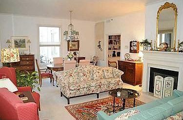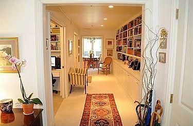 Wonderful corner unit in Sought After Building w/ wonderful outdoor access. Large Covered porch & patio leading to common lawn and garden.Well designed floor plan offers a gracious entry,large gallery with 21 feet of built in bookcases with cabinets below, den with built-ins, eat in kitchen, living/dining room w/ over 10'ceilings,gas fireplace & wood mantle,&an abundance of natural light.MasterBedroom suite w/ WIK, large full bath &doors leading to the porch.The 2nd garage space is now used as storage.
