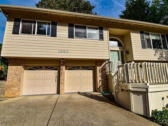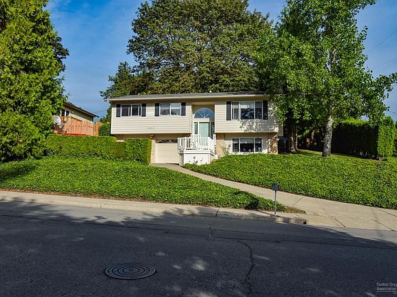 This classic beauty features 3 bedrooms, 2.5 bath, 1,698 sq.ft on spacious .18 acre lot. Beautiful landscaping with lush ivy borders & mature trees give this home a picturesque setting as it sits hillside to bring in wonderful sunset views year round.Reverse living boasts vaulted ceilings, gas fireplace and large picture window in main living area. Laminate floors in kitchen & dining, granite counters, tile back splash, white cabinets & appliances & fridge included. Spacious family room & laundry room on lower level. Sliding door leads to beautiful backyard that features large deck area & hot tub. A/C, Auto sprinklers, 2 car garage w/remotes.