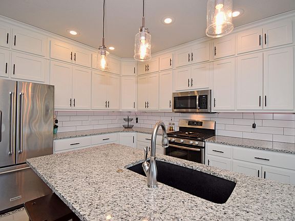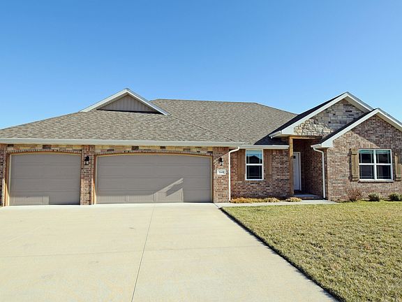 Built in 2019, this one level home features 3 bedrooms, dedicated home office, 2 bathrooms, open floorplan concept, and 3 car garage. The home is loaded with amenities such as hardwood floors, kitchen cabinets that go all the way to the ceiling, granite counters, doorless walk-in master bedroom shower, privacy fenced-in backyard, and in-ground lawn sprinklers. It is located on the north side of Nixa and is just minutes away from Springfield and is move-in ready.