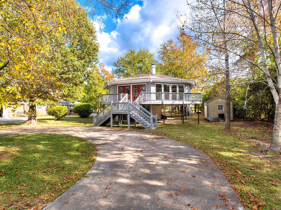 Unique 3 BR, 2.5 BA waterfront home with direct access to Lake Marion. Enjoy beautiful lake and sunset views from your front deck or hop in your boat from your back yard and enjoy boating , fishing, wake boarding & swimming. On a deeded .50 acre lot with circular drive, this updated home exudes character with pecky cypress walls in the great room & kitchen, a wood burning fireplace, vaulted ceilings & luxury vinyl plank floors. It also has an open floor plan and abundant light. Double French doors lead from the great room to the large front deck. Under the home is an all purpose room/office & laundry room. There is a neighborhood boat ramp and tennis courts just down the street. Both bathrooms have been updated. New HVAC in 2020. A remarkable property!