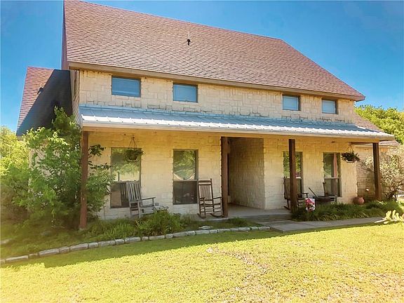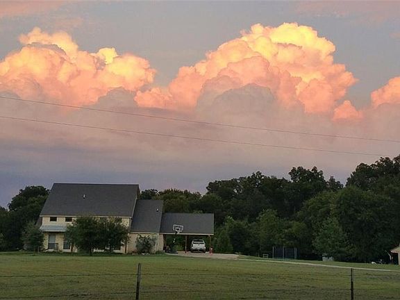 COUNTRY LIVING AT ITS BEST! Gorgeous ranch-style 3,011 sq ft, 5 bdrm, 3 bth SITTING HIGH ON 15 ACRES complete with tranquility & TEXAS COUNTRY VIEWS! A short 30 min. commute to Dallas-Land sits on corner with gated entrance and pipe fencing around rd. frontage. Beautiful front and back porches grace the length of this beautiful home for relaxing in the shade with a glass of iced tea! Open concept living for hosting family and friends with focal pt of living rm-a beautiful stone fireplace. Kitchen has lg. island bar for added seating, ss appliances, dble oven, and a HUGE pantry. Lg bdrms all with wic. Upstairs boasts a grand game rm. and a bonus flex rm! 50 AMP RV plug Lg.storage bldg. with elec. MUST SEE!