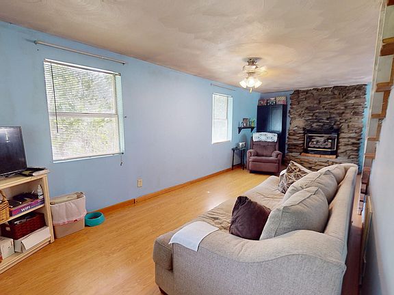 2 story, 3 bedroom, bath and half home sits on approx 1 1/2 acres of land in the country. Enter the home from covered front porch to the living room with a stone gas log fireplace. The bright and cheery kitchen has a breakfast bar. The downstairs bedroom has a handicap accessible half bath. Upstairs there is a master bedroom and guest room along with a full bath and laundry. The large walk-in closets provide plenty of storage. Blacktop driveway. Storage sheds. Adjoining property also for sale. See MLS #23021622