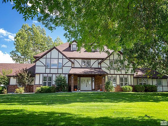 This 5 bedroom 4 bath Custom Tudor style home is located in one of the most beautiful Valley's in Nevada! It is 3,976 sq ft with an attached 576 sq. ft garage. Ove 4000 sq ft under roof. The yard is mature with lots of trees and grass. A irrigation ditch runs through the front yard during irrigation season. The main floor has a mother in laws quarters with its own bathroom, a formal dining room, an office, kitchen that opens into a family room, a laundry room and a bathroom with shower., Upstairs there is a master bedroom with its own bathroom with tub and separate shower, a hall bathroom with tub and shower and three additional bedrooms. Above the attached garage is a bonus room accessed through the laundry room. A third floor could be finished if you need more room. The backyard has a covered porch off the family room with hot tub. Nice pool with water fall in corner of the back yard. Nice playhouse and play area stays with the property. The Shop is 3,840 sq, ft and is framed not a pole barn. Concrete floors power throughout. A green house is between the home and the shop. If you have horses, there is plenty of grass and several pastures to move them in. Convert some of the shop to a barn or through a shed roof on the backside and add a barn.