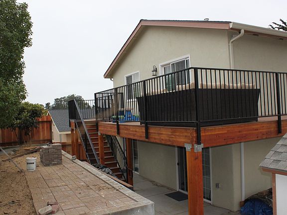 This is the upper unit of this property. The entire home has been renovated and updated with new windows, doors, flooring, updated remodeled bathrooms, and upstairs laundry room, appliances, paint inside and outside, with a paving stone walkway in front and on the west side of the home. There are two large bedrooms in the back. one with a sliding glass door to the patio. The master bedroom w/ walk in shower bathroom and another bedroom in the front. There is an office / 5th bedroom as well. There are built in cabinets and drawers. The kitchen / dining room / living room are Downstairs on the middle level. The unit has forced air heating, all new tile floors, new windows & doors,, The large wrap around deck upstairs gives you outside space to sit and have meals. The beach is only a mile west of the house and miles of hiking, biking and walking trails are on the east side of the home. Monterey fisherman's wharf is only three miles south. There are lots of restaurants, shopping, parks and beach access as well as a Costco and large car dealership center in town. This unit is available furnished or unfurnished. Furnishings included would be $300 a month extra. The Owner pays all utilities. This includes water and sewage, garbage pick up, Internet, heating and cooling This is a value of about $600 / month. Pet deposit is $300 per pet. No smoking tenants only. There are two offstreet parking spaces for this unit.
